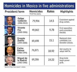 2. Los números de muertes violentas, ejecutado regresarán a los índices que durante mucho tiempo NO eran informados en todos los casos superiores a los que se tienen en el gobierno de Calderón.