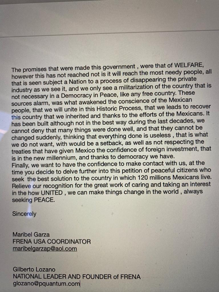 Maribel Garza coordinadora de FRENA USA entrega carta a al ONU para solicitar presencia de OBSERVADORES INTERNACIONALES en la #Revocación de Mandato de #AMLOut