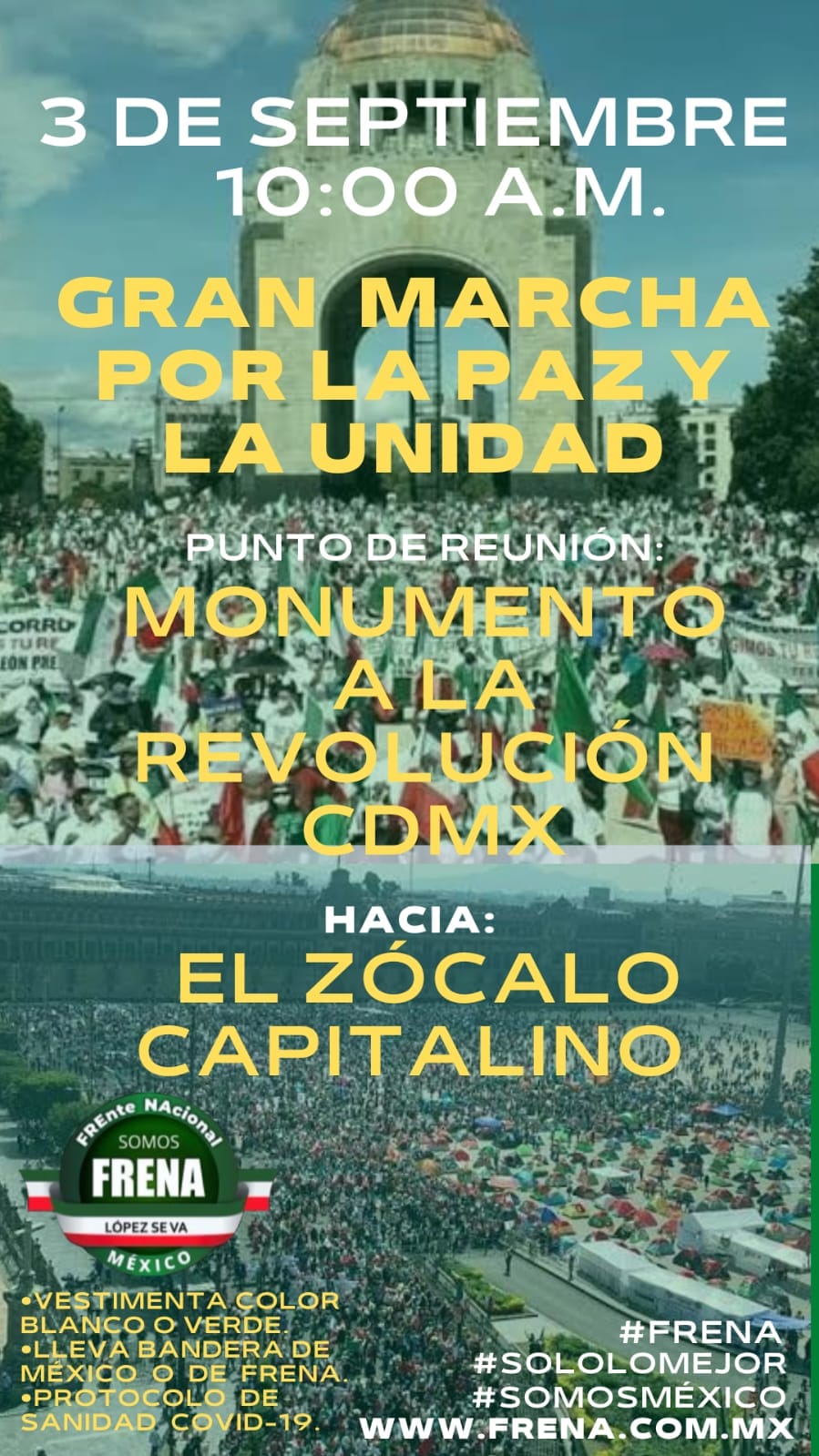 Septiembre 3, se UNE TODO MÉXICO. Gran Marcha por La Paz y La Unidad