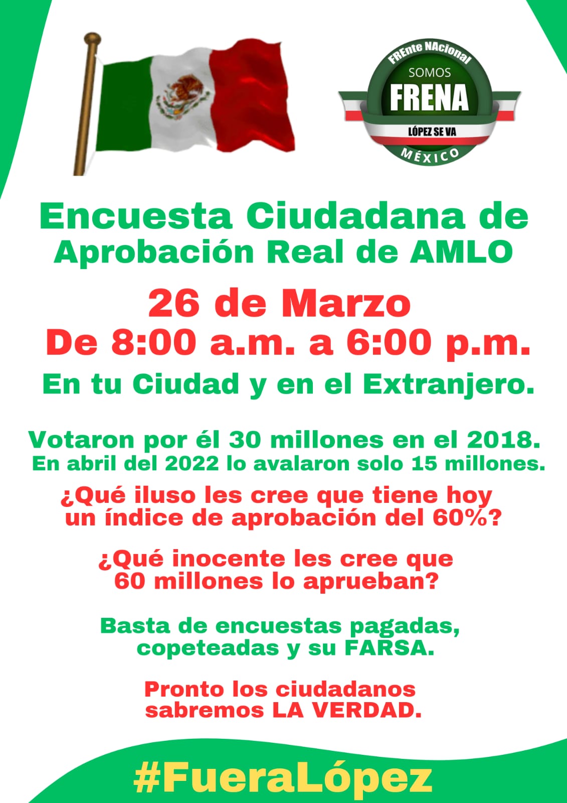 FRENA ha decidido hacer UNA ENCUESTA NACIONAL CIUDADANA para ver LA REAL APROBACIÓN DE LA GESTIÓN DE LÓPEZ, este marzo 26.