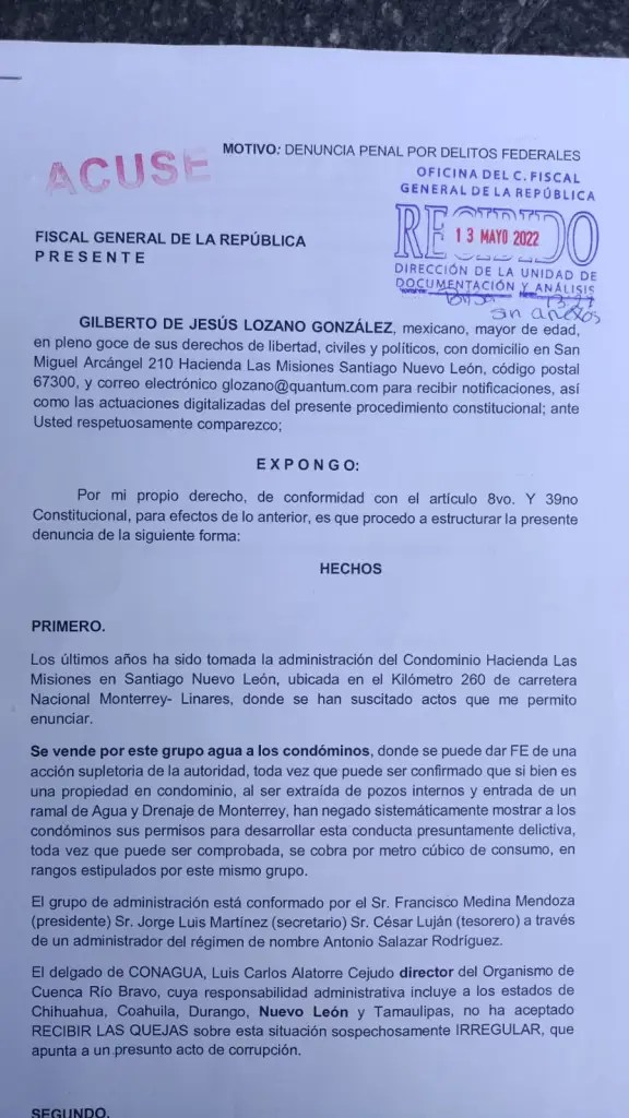 Ante tal situación Gilberto Lozano, pone una denuncia en la FGR, contra quién resulte responsable por estos hechos: