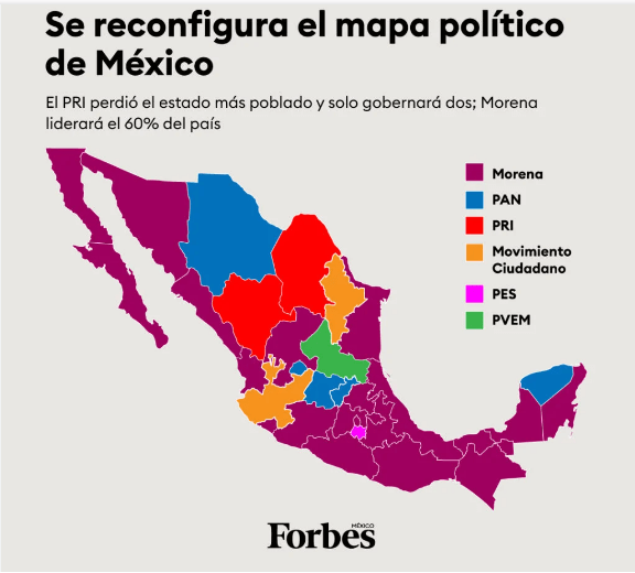 Sabiendo que PARTIDO VERDE, PES siempre van en coalición con MORENA; el PRIAN solo le ha quedado Chihuahua, Coahuila, Querétaro, Yucatán, Durango, Guanajuato y Aguascalientes solo tiene 15.9 millones de electores de 97 millones = 16%.