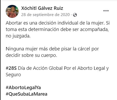 9. Es promotora del aborto, defiende que el derecho de la mujer a hacer con su cuerpo lo que quiera, es irrestricto, si quiere abortar un día antes del alumbramiento es su derecho.