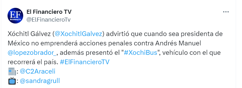 Termina de confirmar el juego «doble cara» que maneja Xóchitl AL GARANTIZAR que NUNCA tomaría acciones penales contra el #NarcoPresidente López y familia.