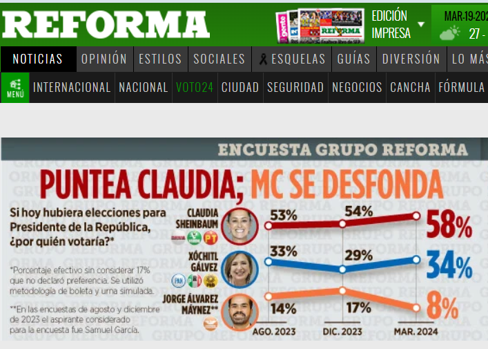 El día de HOY, la prensa MÁS PORRISTA DE XÓCHITL, acepta que está perdida la candirata: (EL REFORMA)