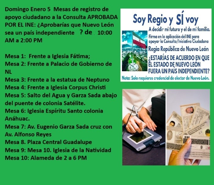 Este domingo 5 de Enero en 10 plazas públicas de Monterrey arranca el proceso de CAPTACIÓN DE FIRMAS, para legitimar la Consulta Popular aprobada por el INE, en cuya Plataforma Nacional aparece la pregunta.